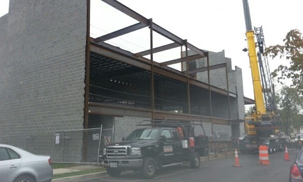 This project involved the new construction of 3 story steel-framed office building. Structural steel columns and beams frame and support steel joists and decking for concrete slabs. (2) staircases and roof railings were also provided. Challenges in this job were proximity to train tracks, and site work being performed on the street, limiting our access to jobsite. Careful planning and precise execution were made to allow our crews to work continuously and safely.