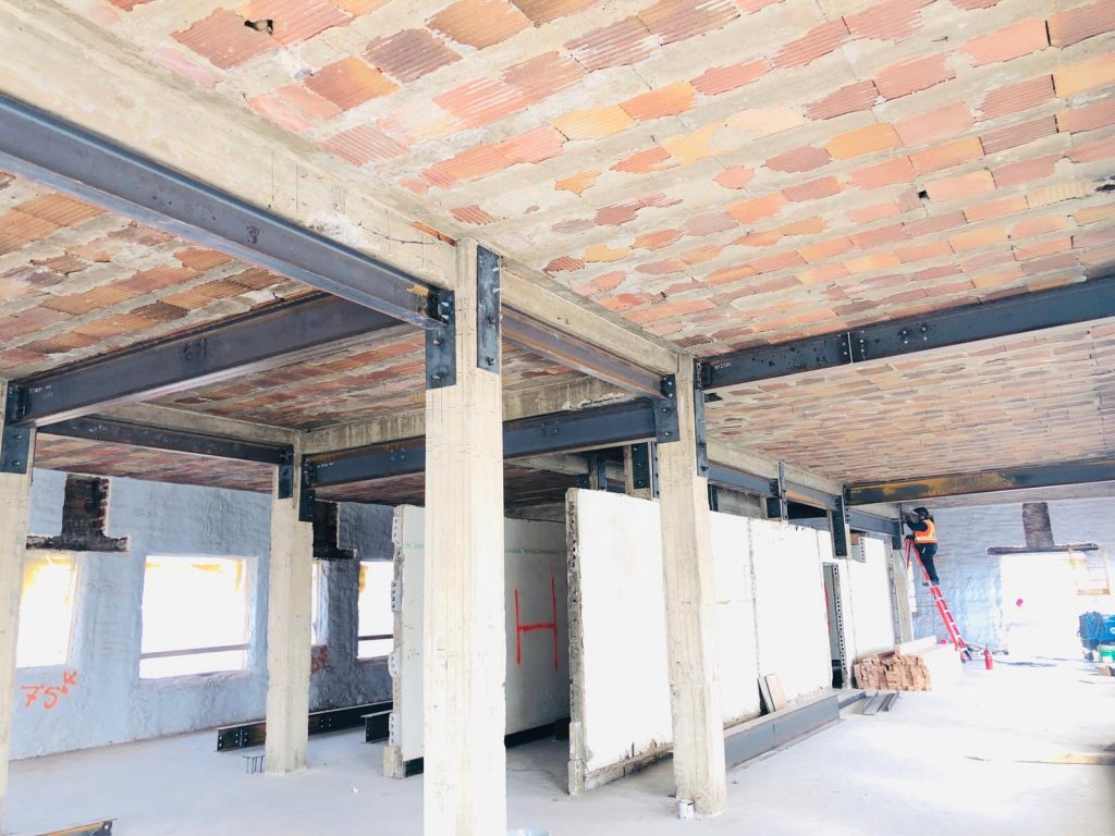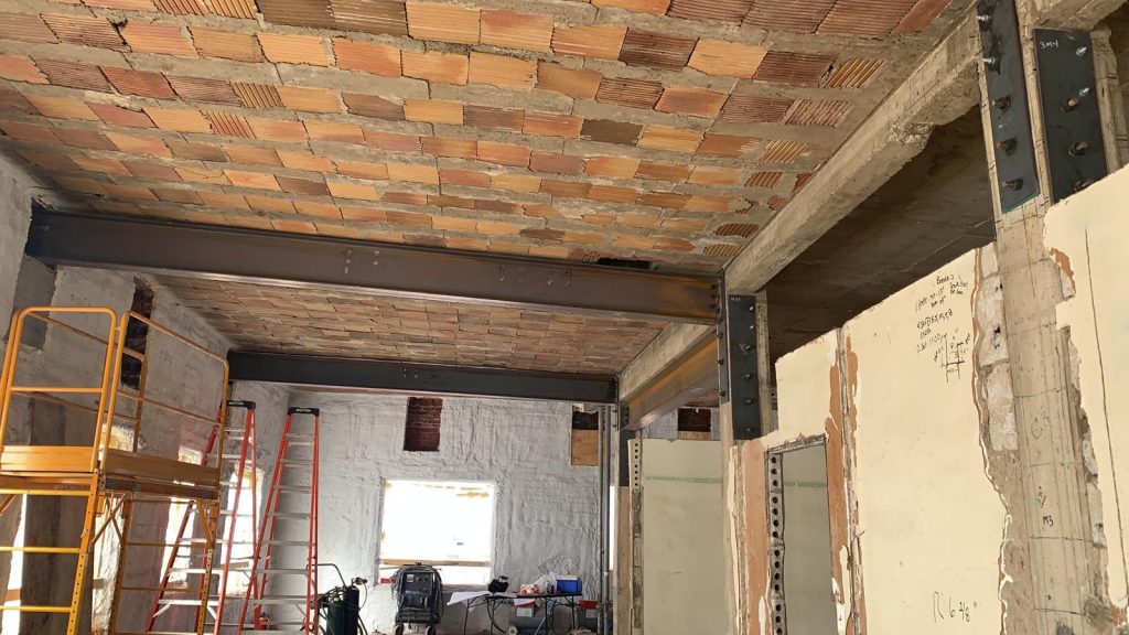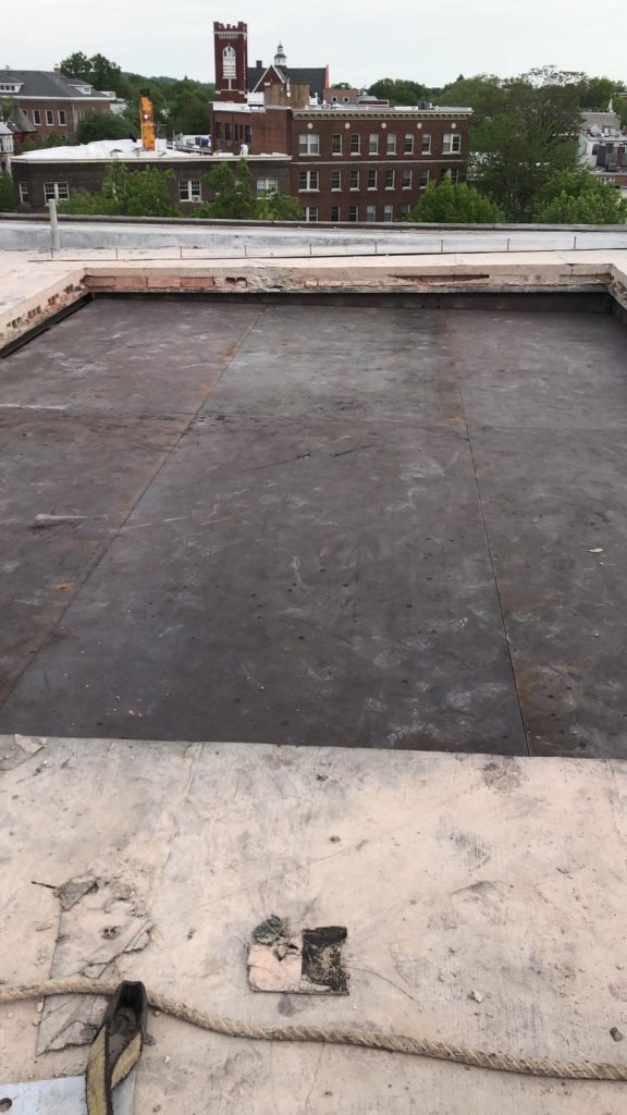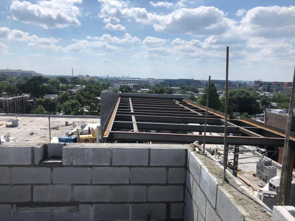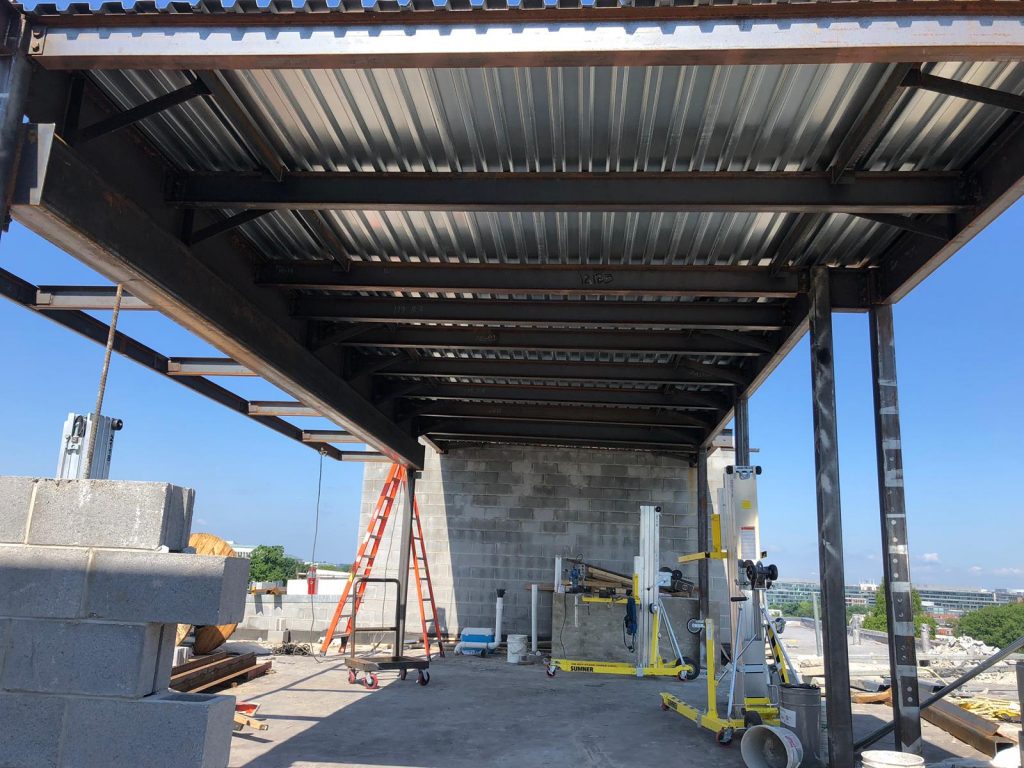 This project involved structural renovations and the fabrication and installation of approximately 80 tons of structural steel. A new rooftop pool frame was added with columns as tall as the building, that were carefully installed through very tight clearances, then topped off with ¾” plate for stainless steel pool. A new high roof was added to give future residents spectacular Capitol views. Renovation work included GPR surveying of existing concrete columns and installing new epoxy anchors and steel plates to attach new steel beams. Several crane mobilizations were needed to fit steel in through window openings and install structural beams from the bottom instead of from the top (which would be a lot easier). OIW counted on real-time field updates and precise field measurements to custom make each piece of steel to ensure the correct fit.